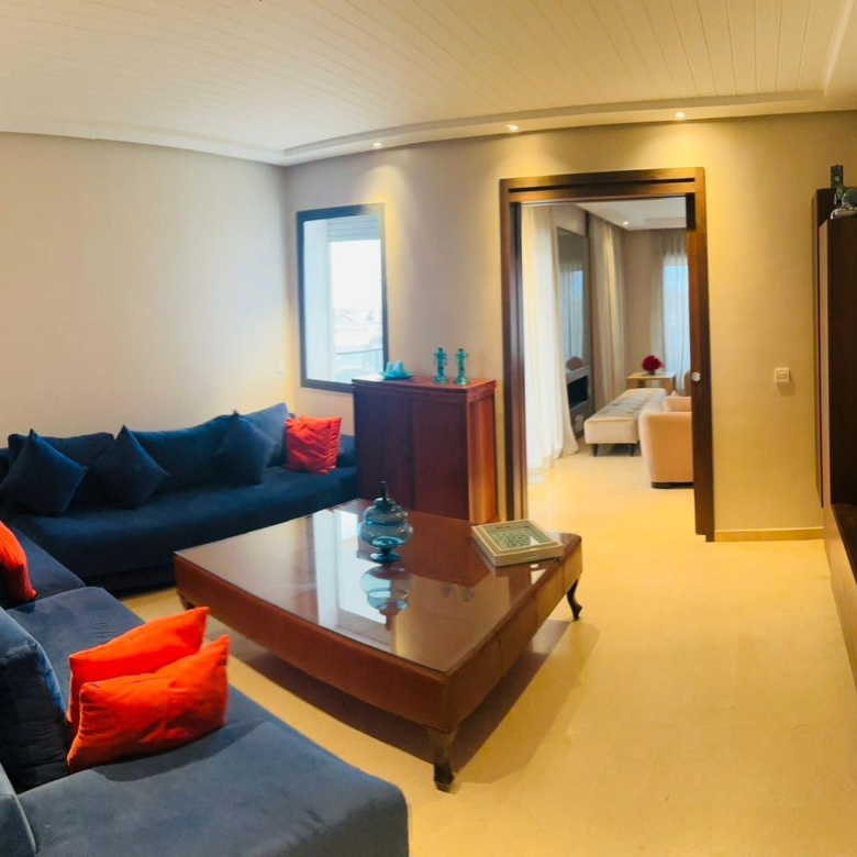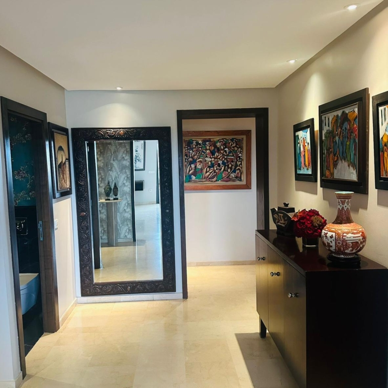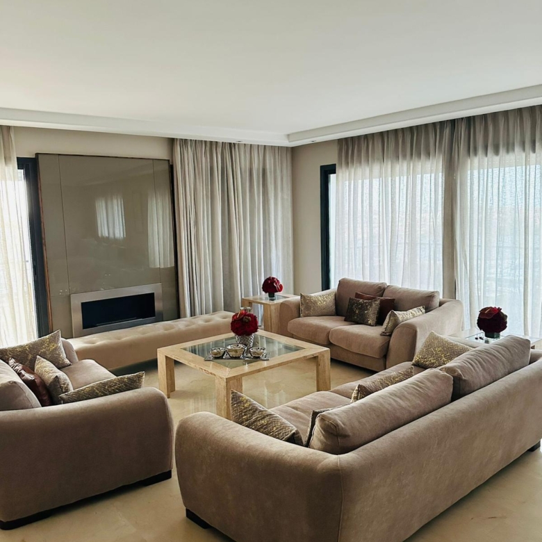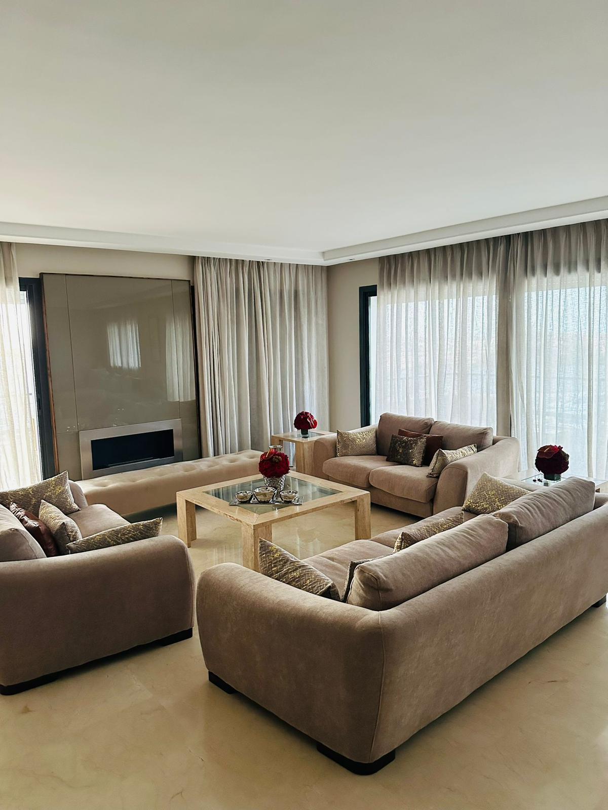 Superbe appartement meublé de 212 m², situé dans une résidence fermée sécurisée, avec piscine et jardin.