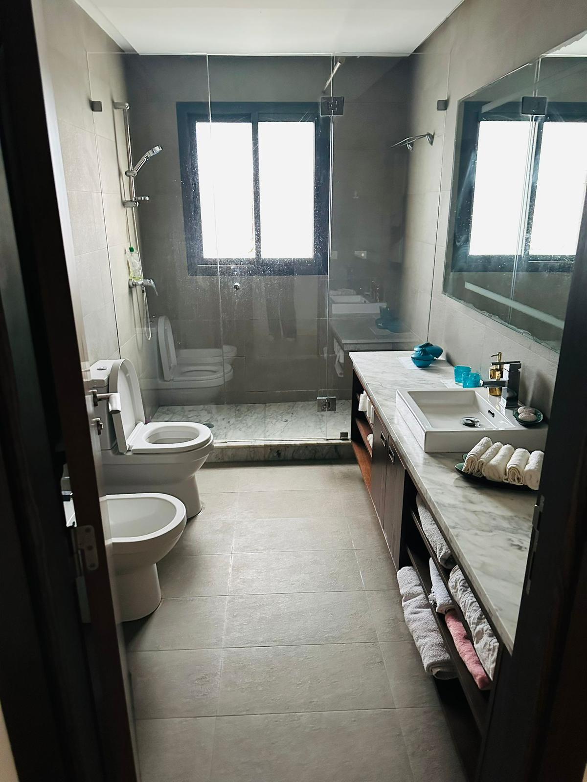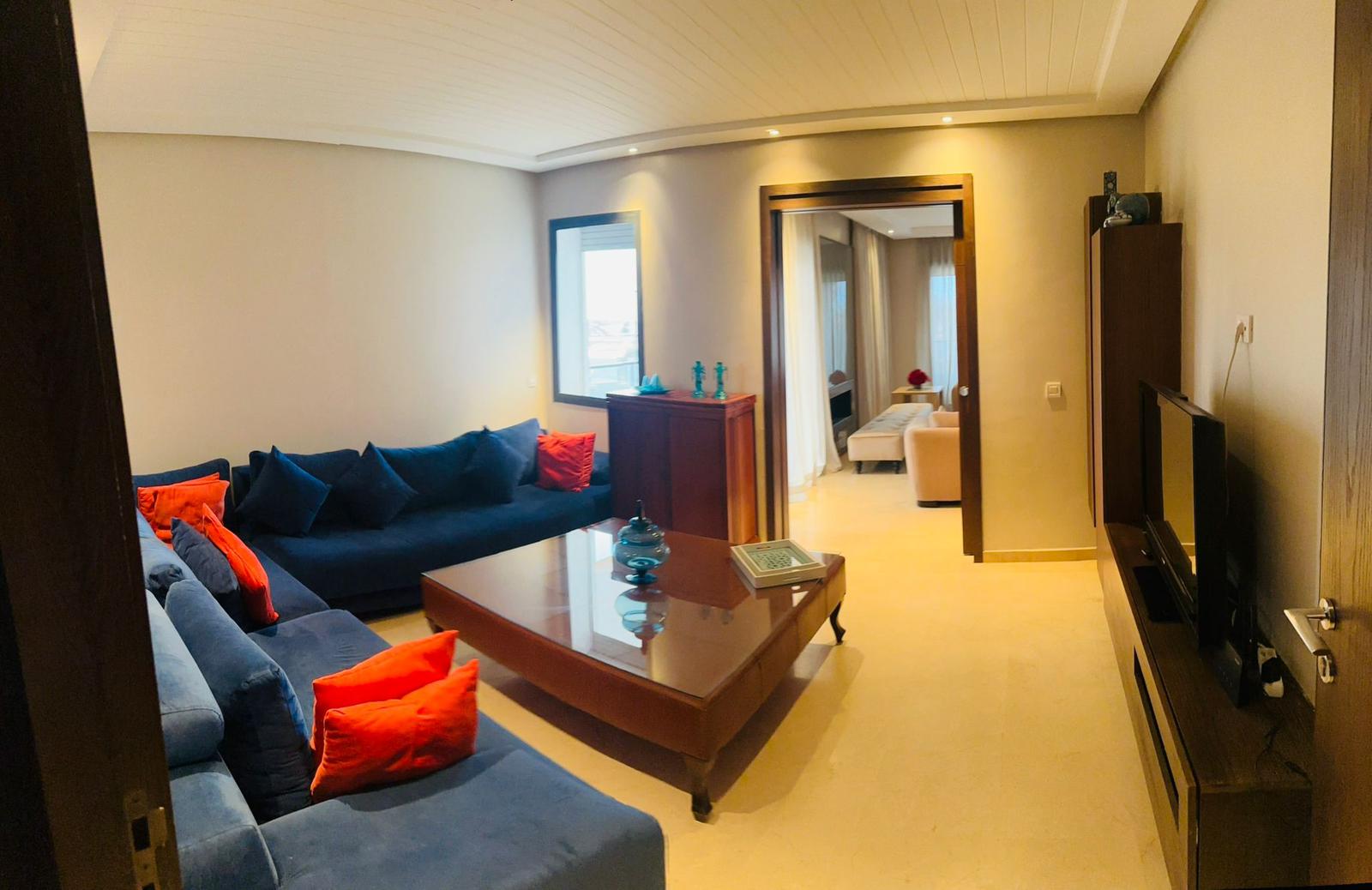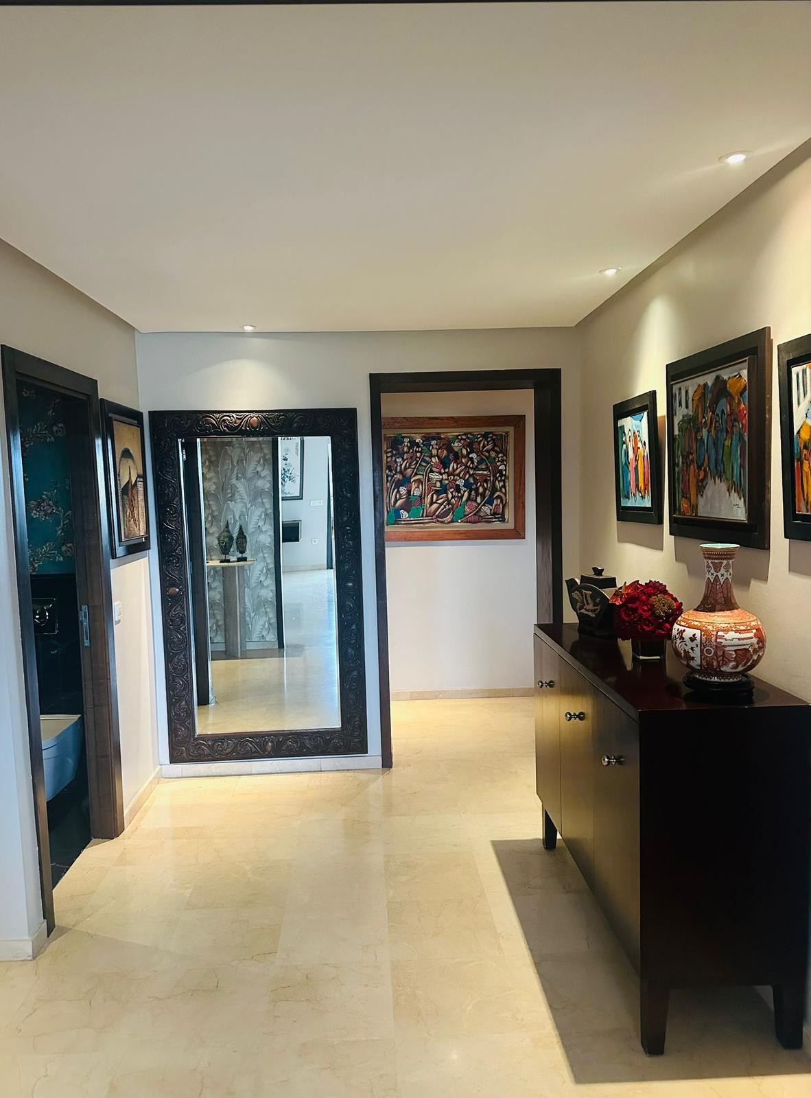 Superbe appartement meublé de 212 m², situé dans une résidence fermée sécurisée, avec piscine et jardin.