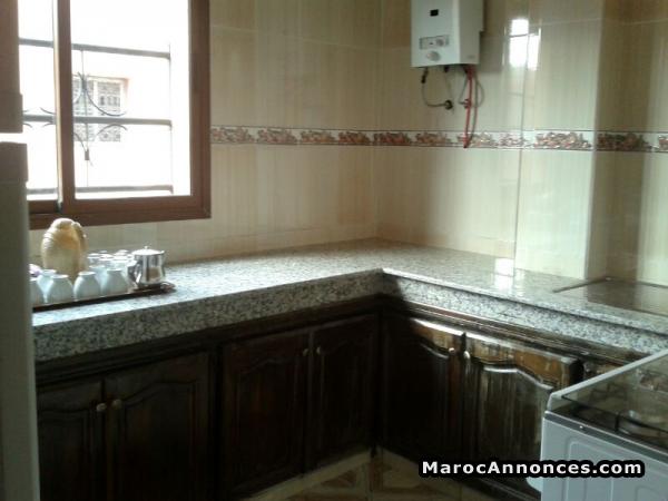 Detail de l’annonce :Location à longue ou moyenne durée de mon appartement de 75 m² au quartier charaf (moyen standing) à proximité de marjane et autres magasins, entièrement meublé en bon état, un grand salon, 2 chambres à coucher avec placard chacune, 1 salle de bain, 1wc, cuisine équipée, un hall, coin repas, vue sur 2 façades, 2ème étage, très bon emplacement, ensoleillé, location pour une petite famille de préférence