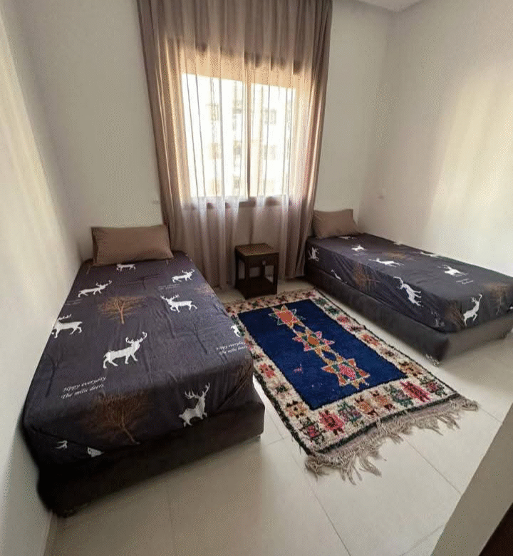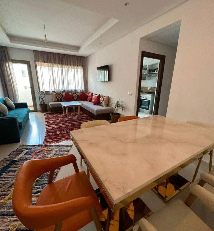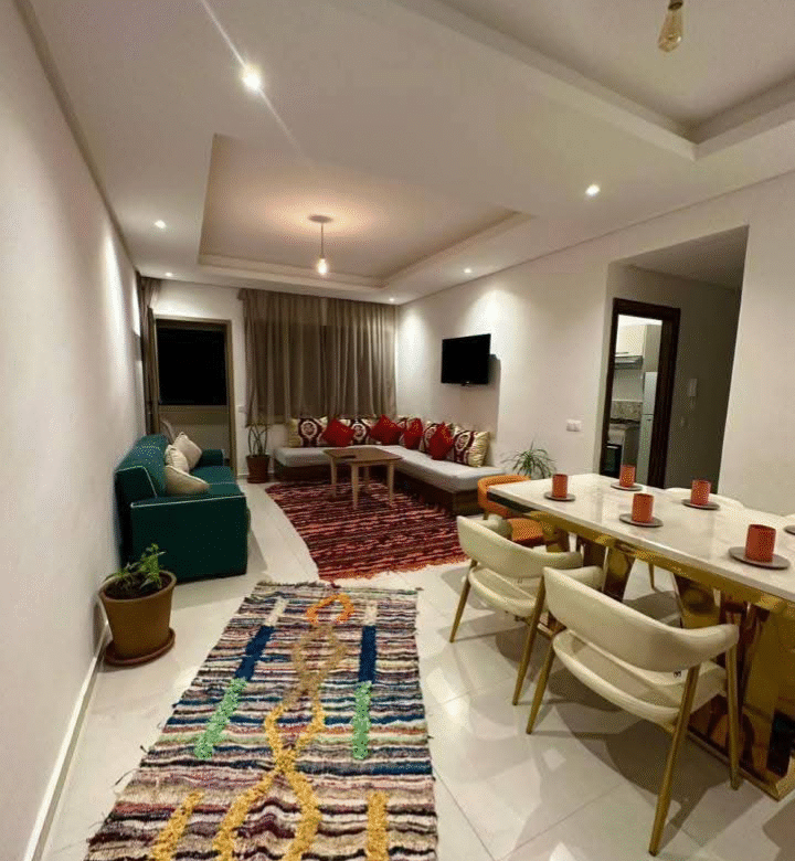 Appartement équipé à la location à la journée à Agadir, pour les familles uniquement. Il est situé à proximité de toutes les installations et installations publiques.