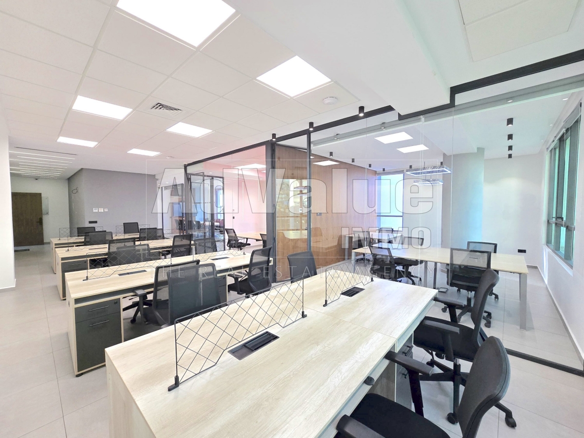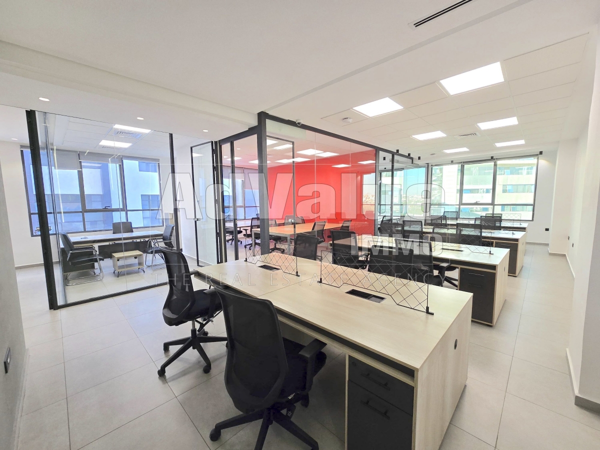 À louer, un plateau bureau équipé et meublé de 148 m² sur deux façades sans vis-à-vis, avec parking titré, situé au 5ème étage dans un immeuble moderne doté de 4 ascenseurs, idéalement localisé à Sidi Maârouf non loin de l’hôtel Onomo à Casablanca