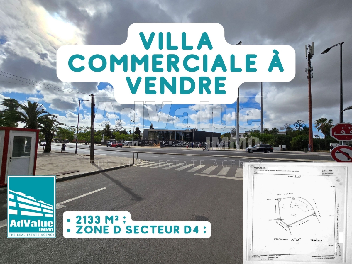 À vendre une magnifique villa commerciale sur un terrain de 2133 m² doté d’un jardin et d’une piscine, située dans la Zone D Secteur D4, au Boulevard Al Qods, en face de HEM et à proximité de Paul Californie