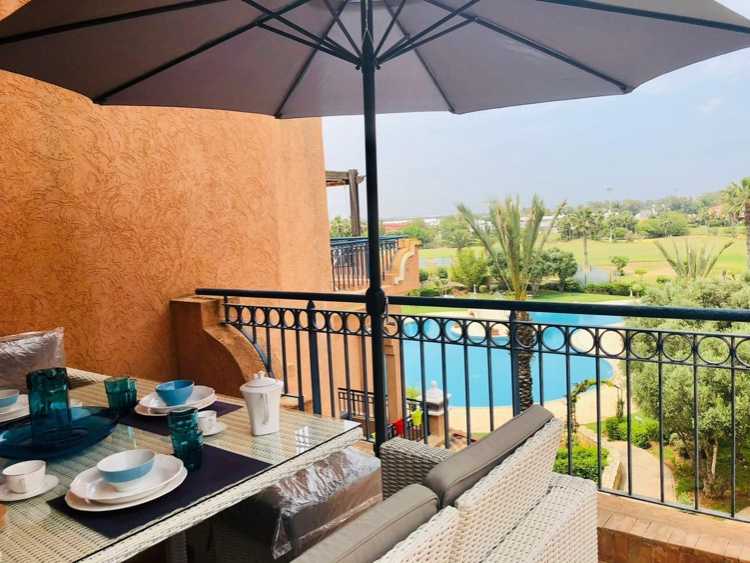Detail de l’annonce :Résidences du Golf de Bouznika Bay. Appartement meublé, bien équipé, sécurisé, finition haut de gamme, belle terrasse, balcon, piscine, terrain de golf, espace enfant, verdure bien entretenue, a proximité du plage, etc…